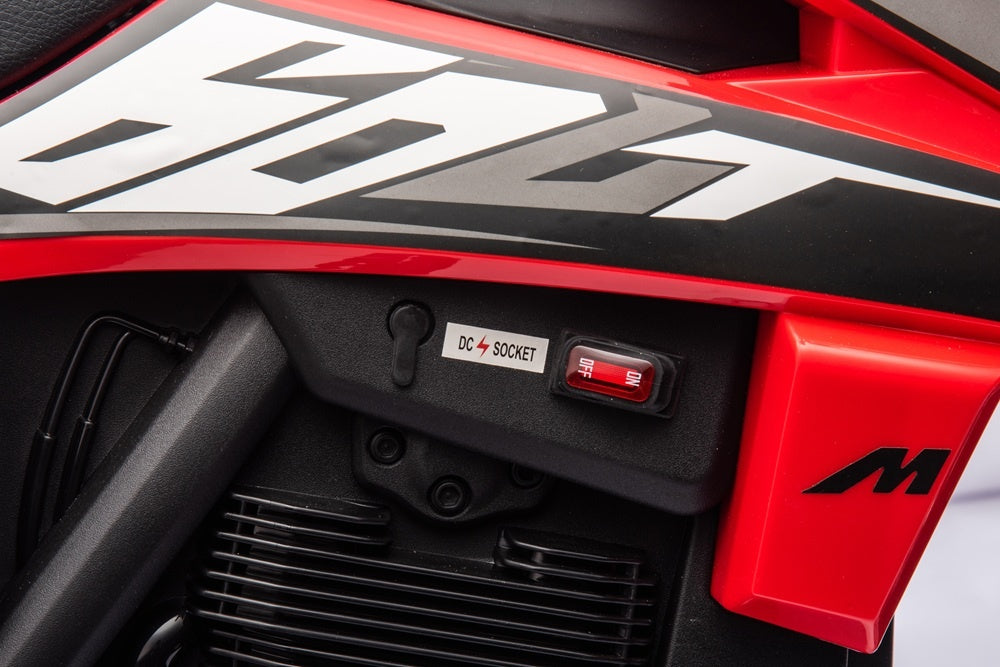 Thanks to the pneumatic air tires, the motorcycle has excellent grip and cushioning, allowing your child to ride comfortably and stably, even on uneven terrain. The leather-style seat provides extra comfort and a stylish appearance, while the front suspension helps absorb shocks and makes the ride even smoother. The motorcycle is equipped with a disc brake for reliable and quick stopping, which benefits safety.